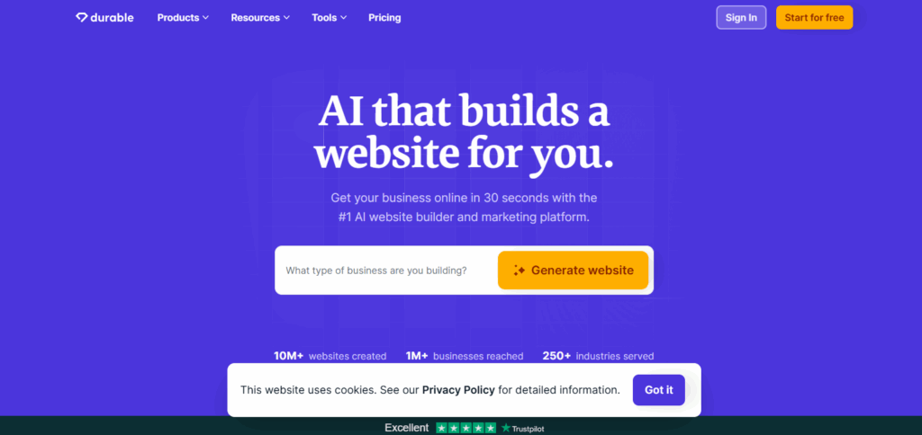 Why use it? Durable helps you look professional online right away. It’s a solid choice for freelancers wanting to build a presence and attract clients, even when they’re busy.